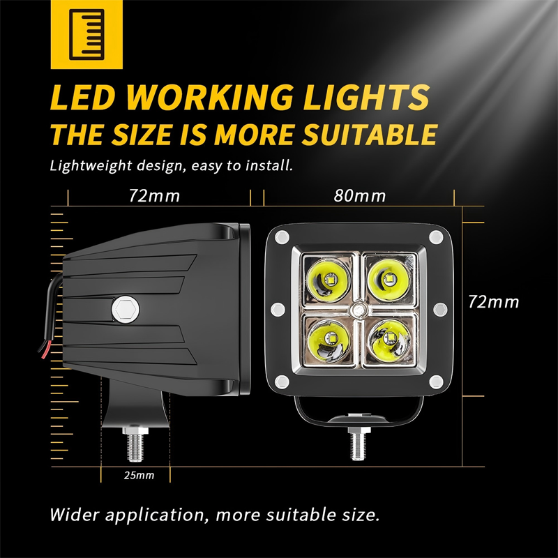 إن هذه الأضواء الكاشفة المربعة مقاس 4 بوصات ، التي تم تصميمها مع غلاف صلب من الألومنيوم ، توفر إضاءة بيضاء/صفراء يمكن اختيارها. إن توافقها مع تصنيف IP65 من 9 إلى 80 فولت يجعلها مثالية للمركبات على الطرق الوعرة والجرارات والتطبيقات البحرية التي تتطلب إضاءة متعددة الاستخدامات ومقاومة للطقس في الظروف المتغيرة.