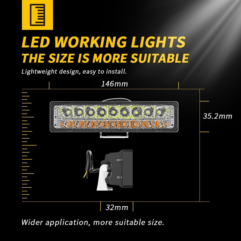 • شريط إضاءة LED متعدد الاستخدامات 6 بوصة ثنائي اللون (أبيض/أصفر) مع غلاف من الألومنيوم والكمبيوتر ومرونة IP65. يضمن دعم الجهد العريض 9-80 فولت التوافق مع الشاحنات وسيارات الدفع الرباعي وعربات الدفع الرباعي والشاحنات والجرارات والقوارب. مصممة لضمان المتانة والأداء الأمثل للإضاءة على الطرق الوعرة.